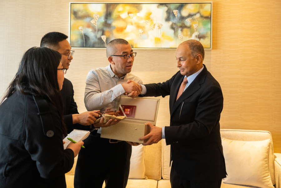 叶宗伦总经理诚挚邀请侯赛因•穆萨拉姆到访三叶集团参观交流,期待和亚奥理事会进一步加深合作。会谈结束,双方互赠了礼物。